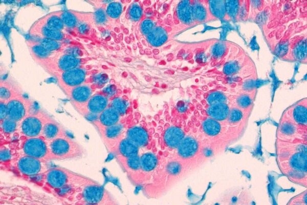 Alcian blue solution, pH 2.5, for microscopy code 1016470500, sản xuất bởi hãng Merck - Đức. Là chất lỏng màu xanh đậm dùng để nhuộm mô tế bào con người. Quy cách đóng gói trong chai nhựa 500ml.
