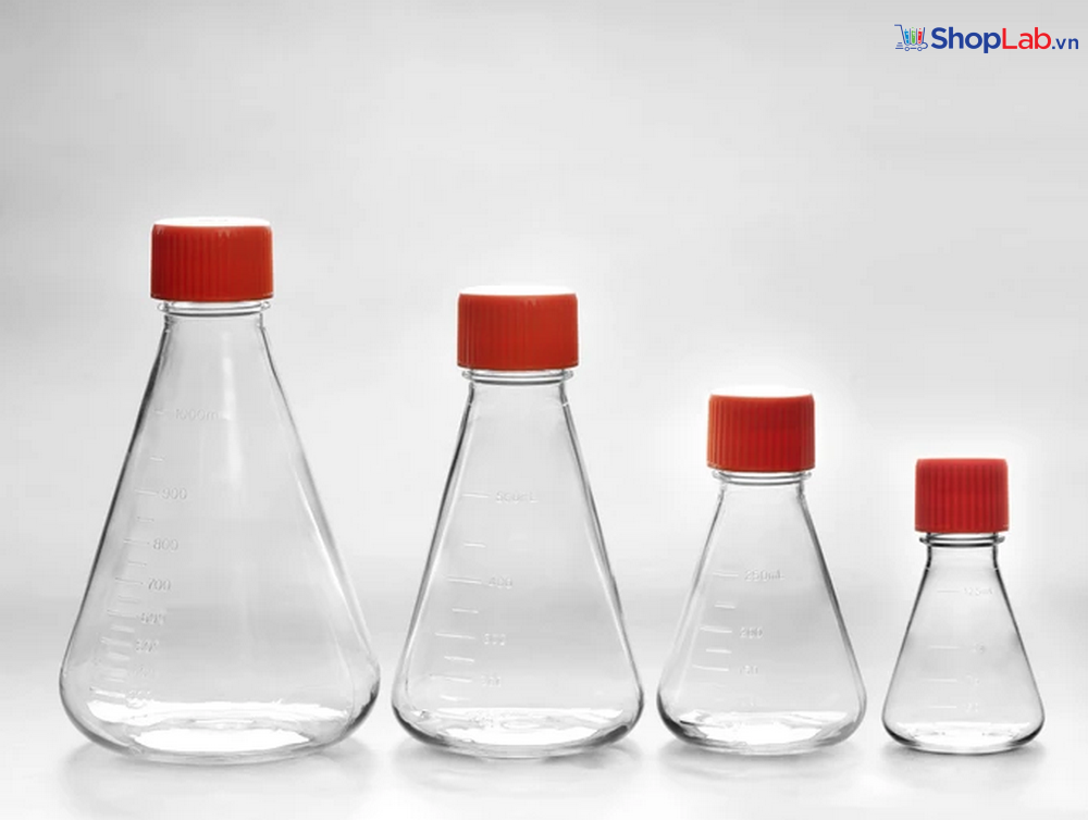 - Bình Erlenmeyer được thiết kế cho nhiều ứng dụng xử lý chất lỏng trong phòng thí nghiệm, bao gồm rót, trộn, bảo quản và nuôi cấy tế bào huyền phù |