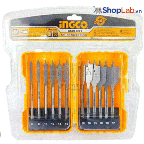 | Tên sản phẩm: | Bộ 12 mũi khoan gỗ đầu dẹp AKDL1201 Ingco |