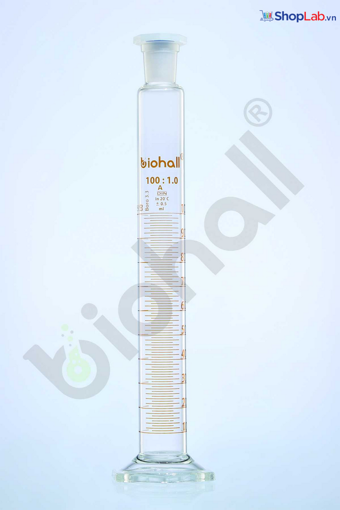 Ống đong thủy tinh có nút, đế lục giác, có chia vạch 25ml-0.5ml Biohall |